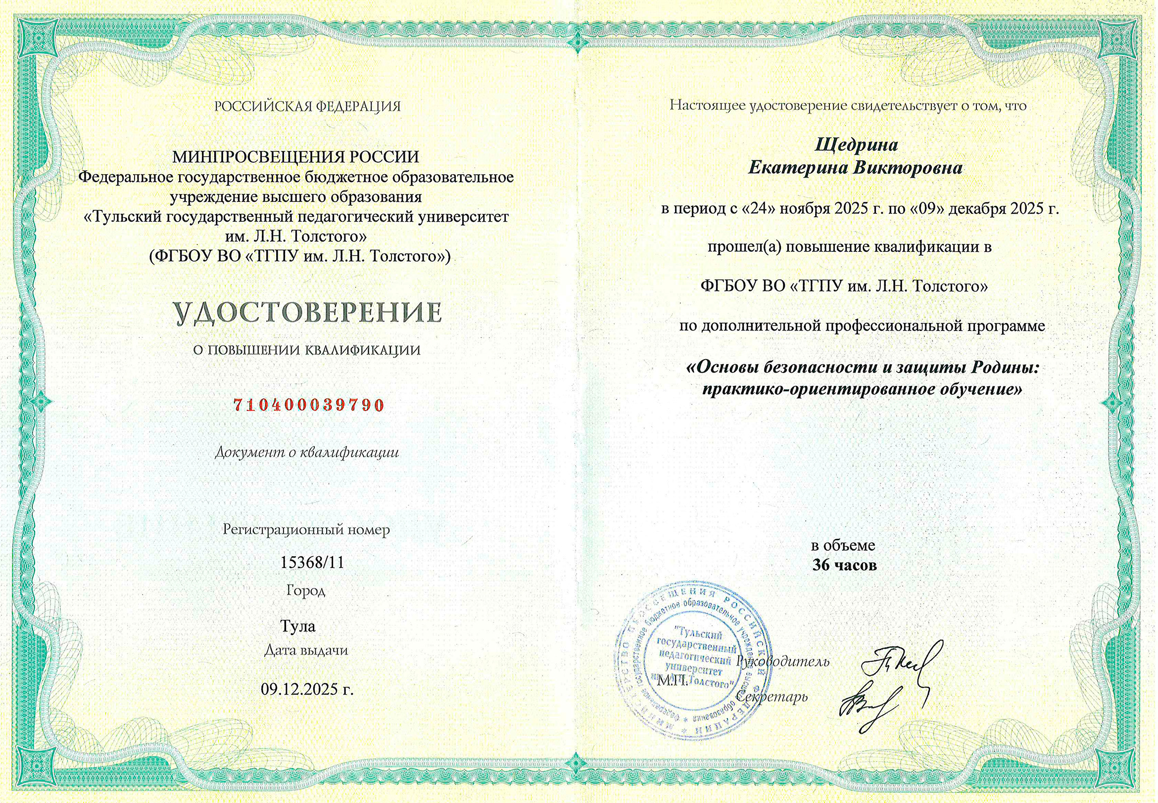 Документы о повышении квалификации