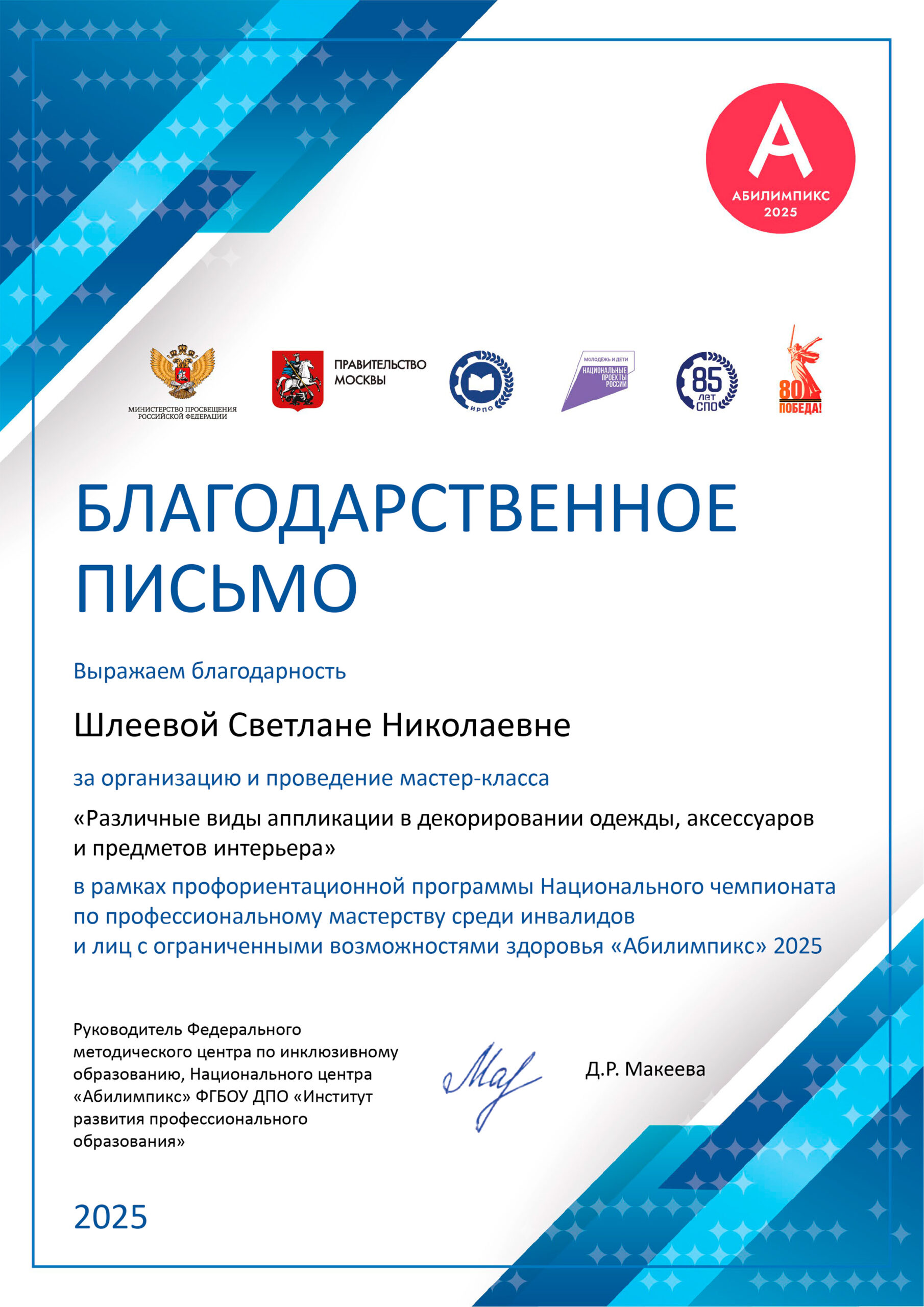 Учебные дисциплины, междисциплинарные курсы, учебная практика: ОП.04. Специальный рисунок; А.02. Основы социально-правовой компетентности; А.03. Декоративно-прикладное искусство; МДК.01.01. Подготовка и раскрой материалов; МДК.02.02. Оборудование швейного производства
