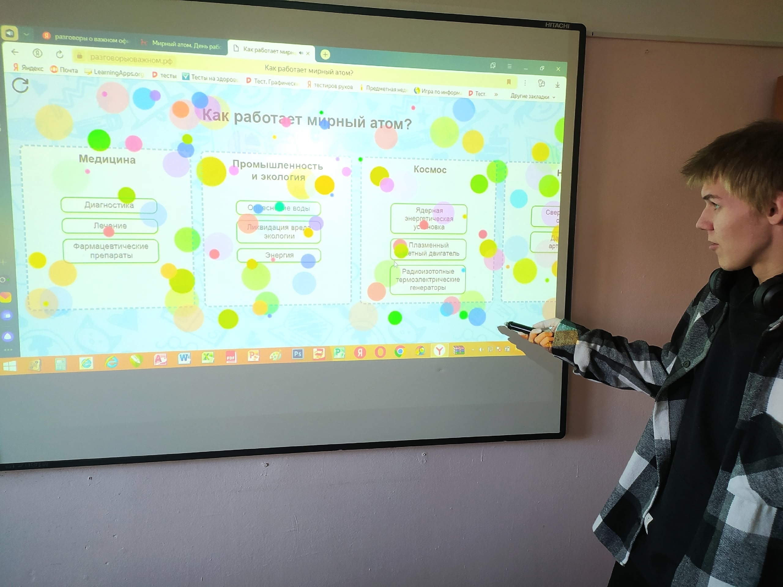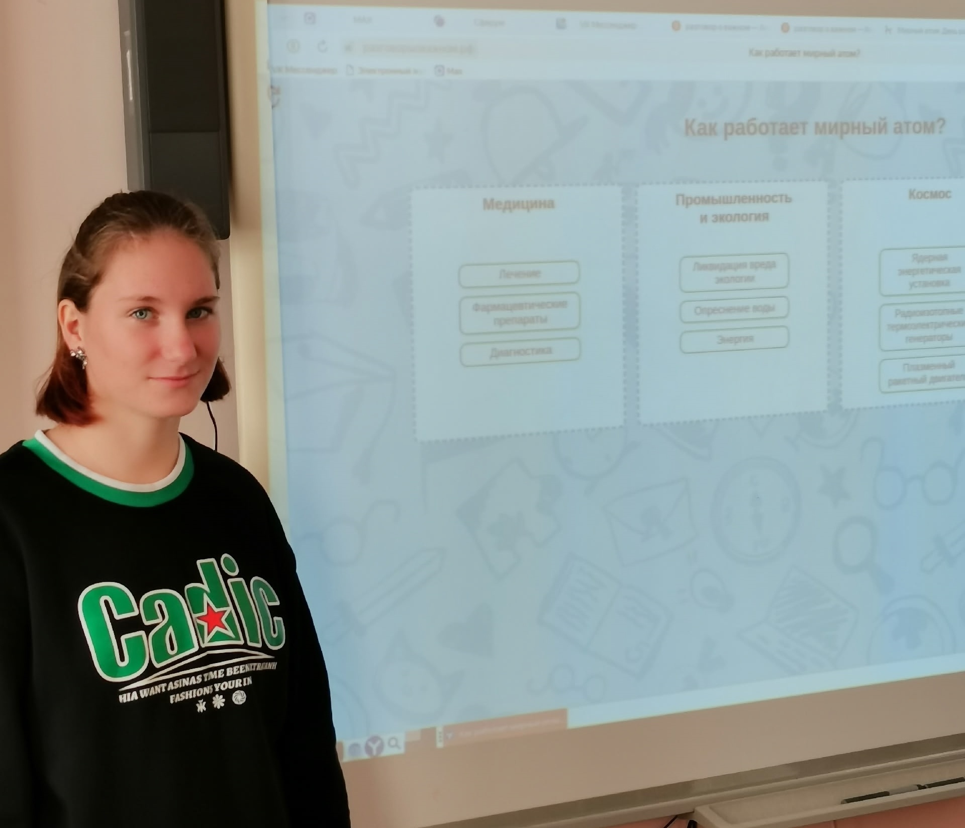 22 сентября в ГПОУ ТО «Тульский техникум социальных технологий» состоялся очередной урок из цикла «Разговоры о важном» по теме «Мирный атом. День работника атомной промышленности». Занятия прошли в формате познавательной беседы с интерактивными элементами, посвящены развитию атомной отрасли в нашей стране и такому понятию, как «мирный атом».