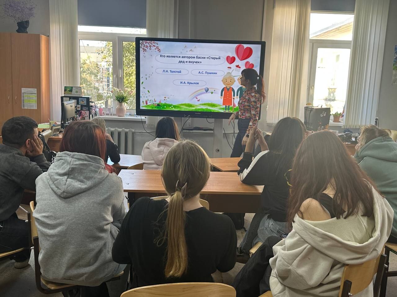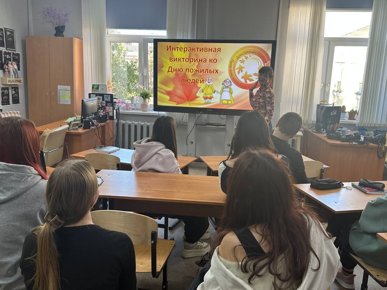 Обучающиеся ГПОУ ТО «Тульский техникум социальных технологий» с советником директора по воспитанию провели увлекательную викторину «Старость в радость».