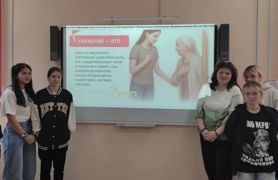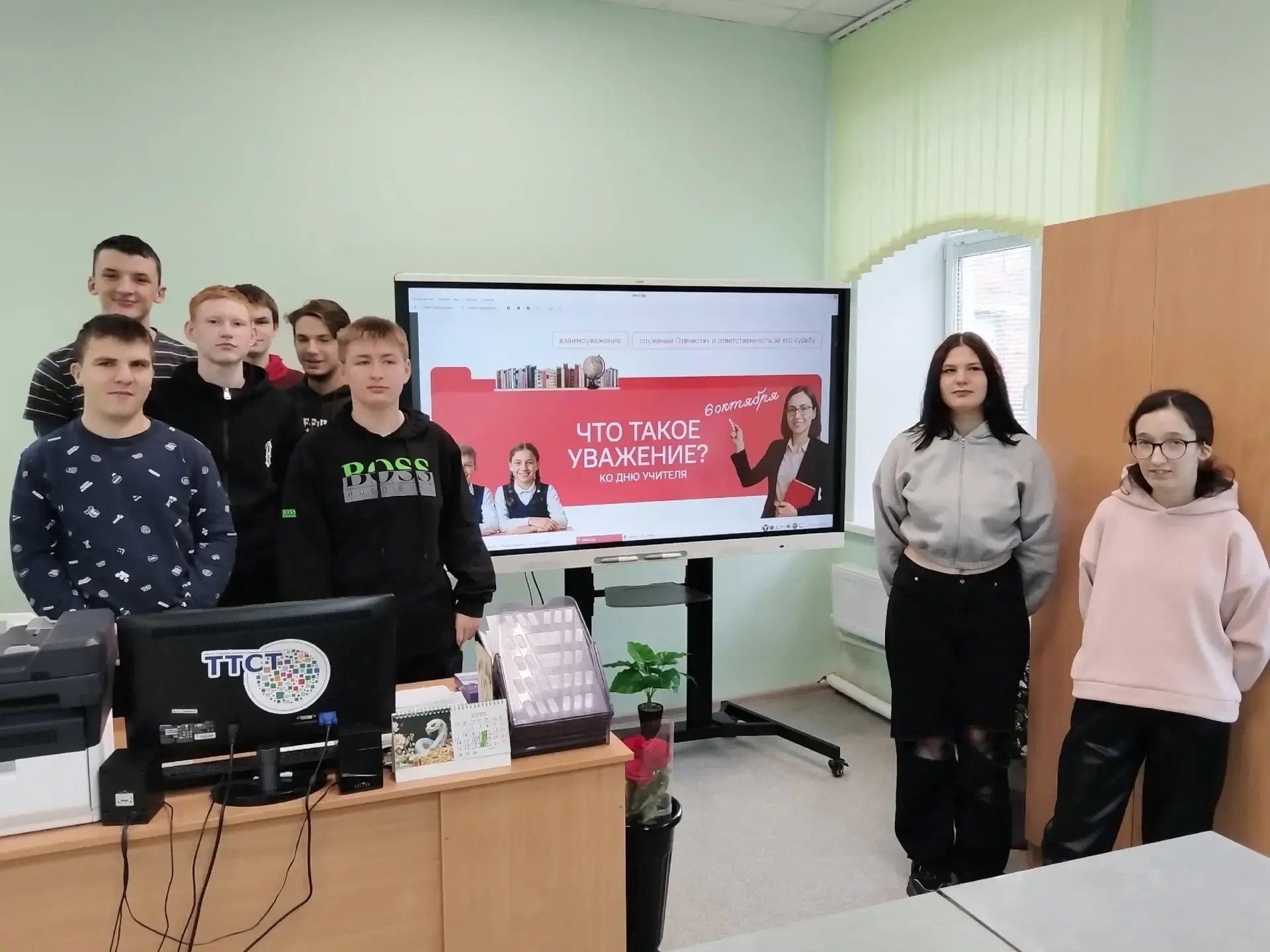 06 октября в ГПОУ ТО «Тульский техникум социальных технологий» прошли занятия, посвященные Дню учителя, из цикла «Разговоры о важном» по теме: «Что такое уважение?»