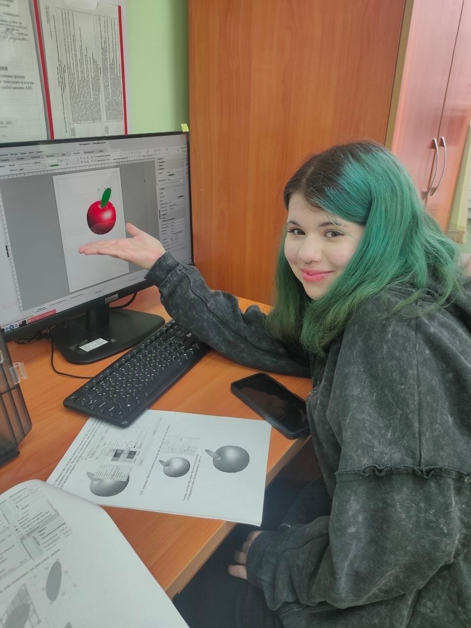 С большим интересом на другой станции школьники в программе векторной графики создавали 3D объекты: яблоко, гвоздь, гриб.
