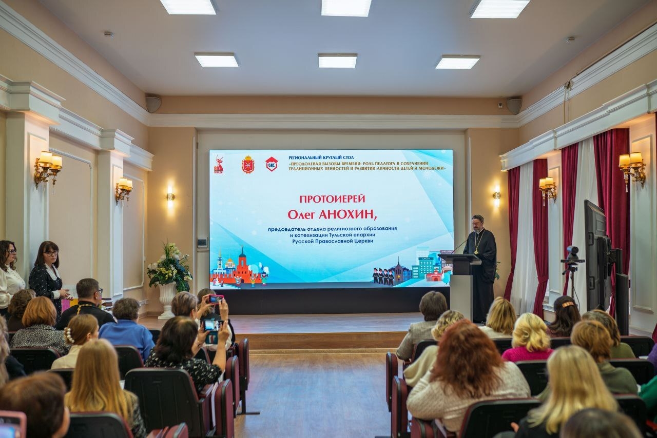 Круглый стол традиционно проводился Институтом повышения квалификации совместно с представителями отделов религиозного образования и катехизации Тульской и Белевской епархий Русской Православной Церкви.
