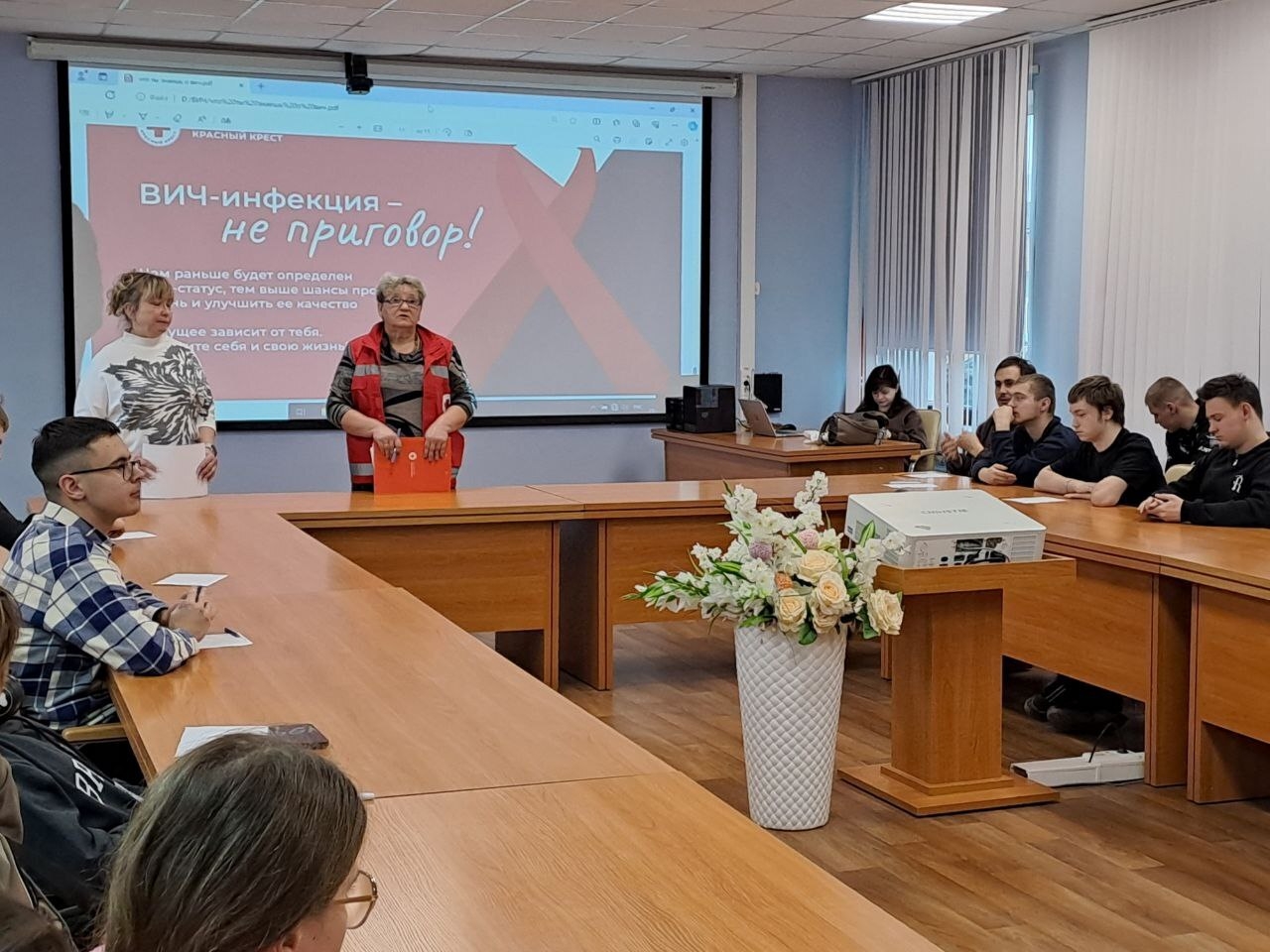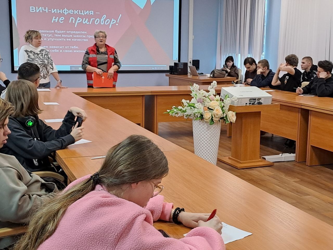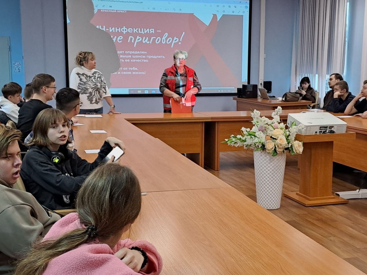 01 декабря в ГПОУ ТО «Тульский техникум социальных технологий» прошло профилактическое мероприятие «Знание – лучший защитник: Боремся со СПИДом вместе!» в формате лектория, посвященное Всемирному дню борьбы со СПИДом с участием Фатеевой Галины Анатольевны, и.о. председателя Тульского регионального отделения «Российский Красный Крест», Комаровой Натальи Геннадьевны, социального педагога и Гудукиной Маргариты Игоревны, советника директора по воспитанию.