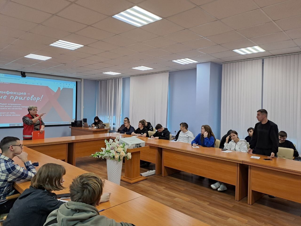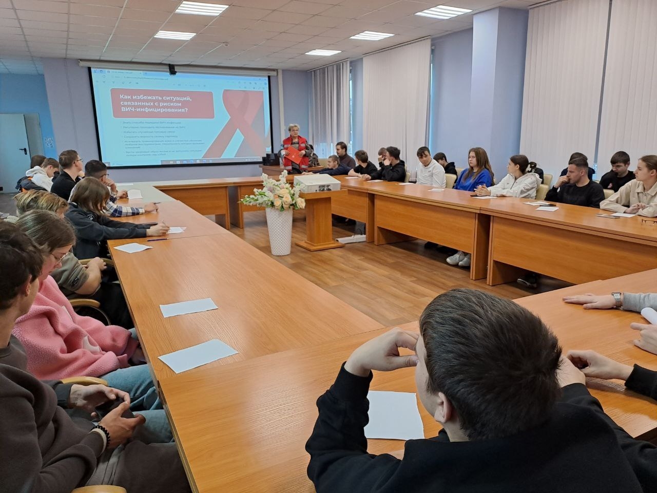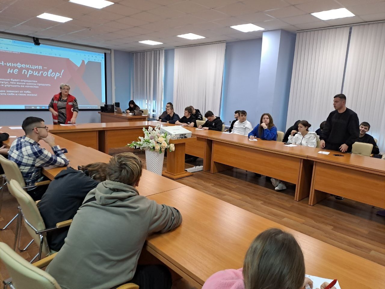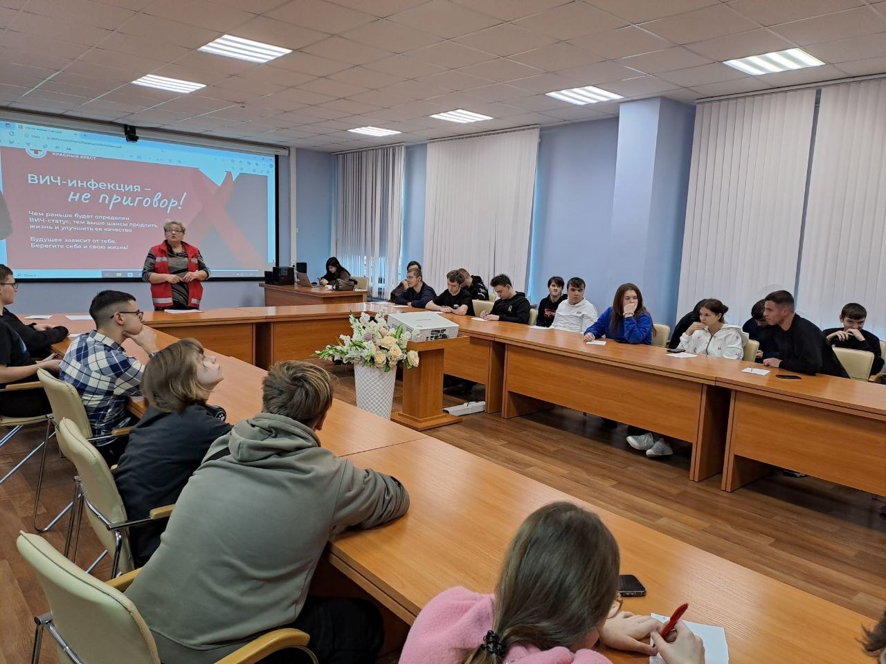 01 декабря в ГПОУ ТО «Тульский техникум социальных технологий» прошло профилактическое мероприятие «Знание – лучший защитник: Боремся со СПИДом вместе!» в формате лектория, посвященное Всемирному дню борьбы со СПИДом с участием Фатеевой Галины Анатольевны, и.о. председателя Тульского регионального отделения «Российский Красный Крест», Комаровой Натальи Геннадьевны, социального педагога и Гудукиной Маргариты Игоревны, советника директора по воспитанию.