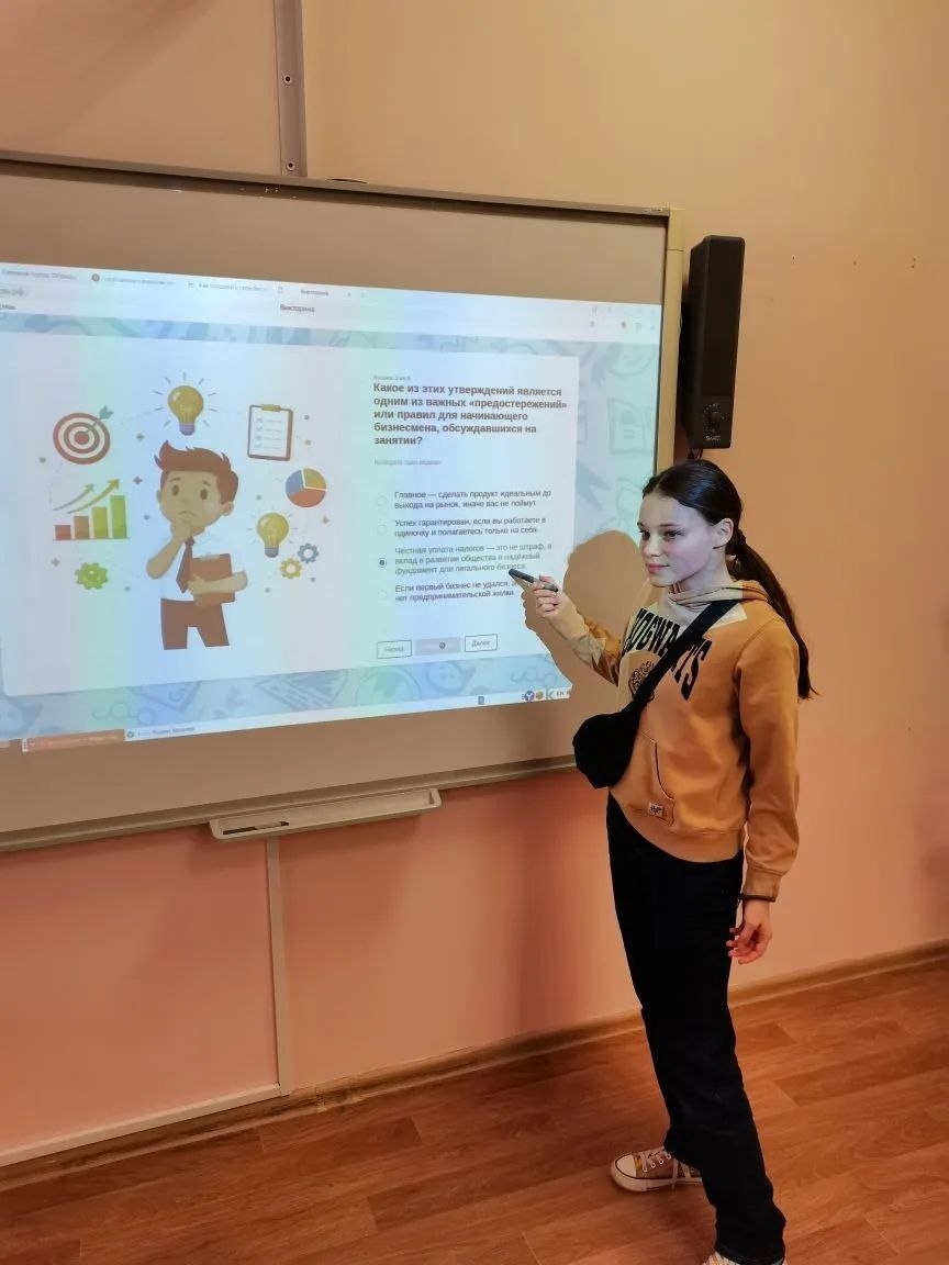 Вместе с ребятами педагоги поговорили о том, с чего начинается предпринимательский путь, какие решения приходится принимать на старте и почему собственное дело — это ответственность, умение видеть возможности и готовность работать в команде.