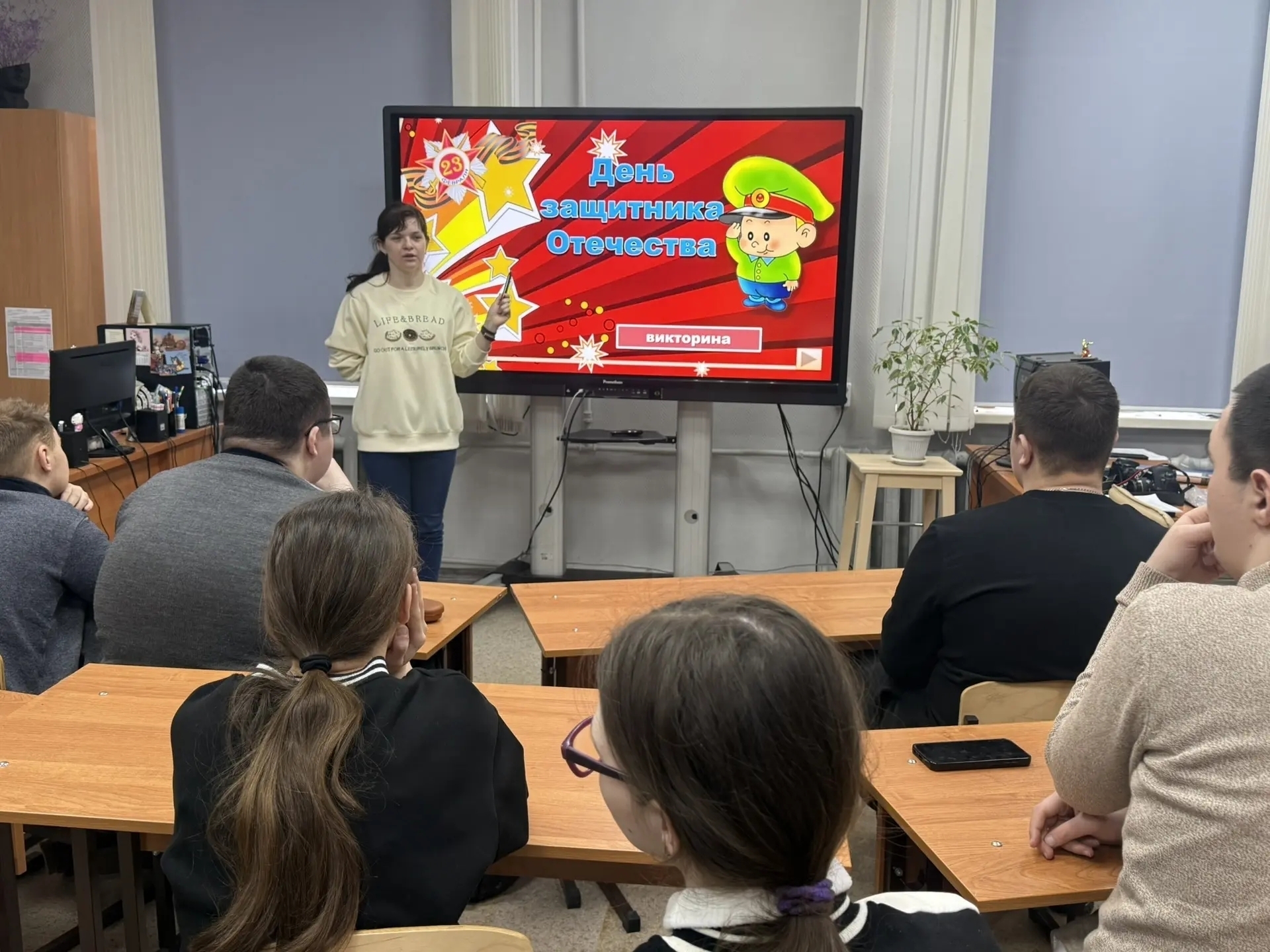 20 февраля в ГПОУ ТО «Тульский техникум социальных технологий» обучающиеся, педагоги и советник директора по воспитанию организовали праздничную викторину «День защитника Отечества» в стиле «Своя игра», и это стало настоящим событием!