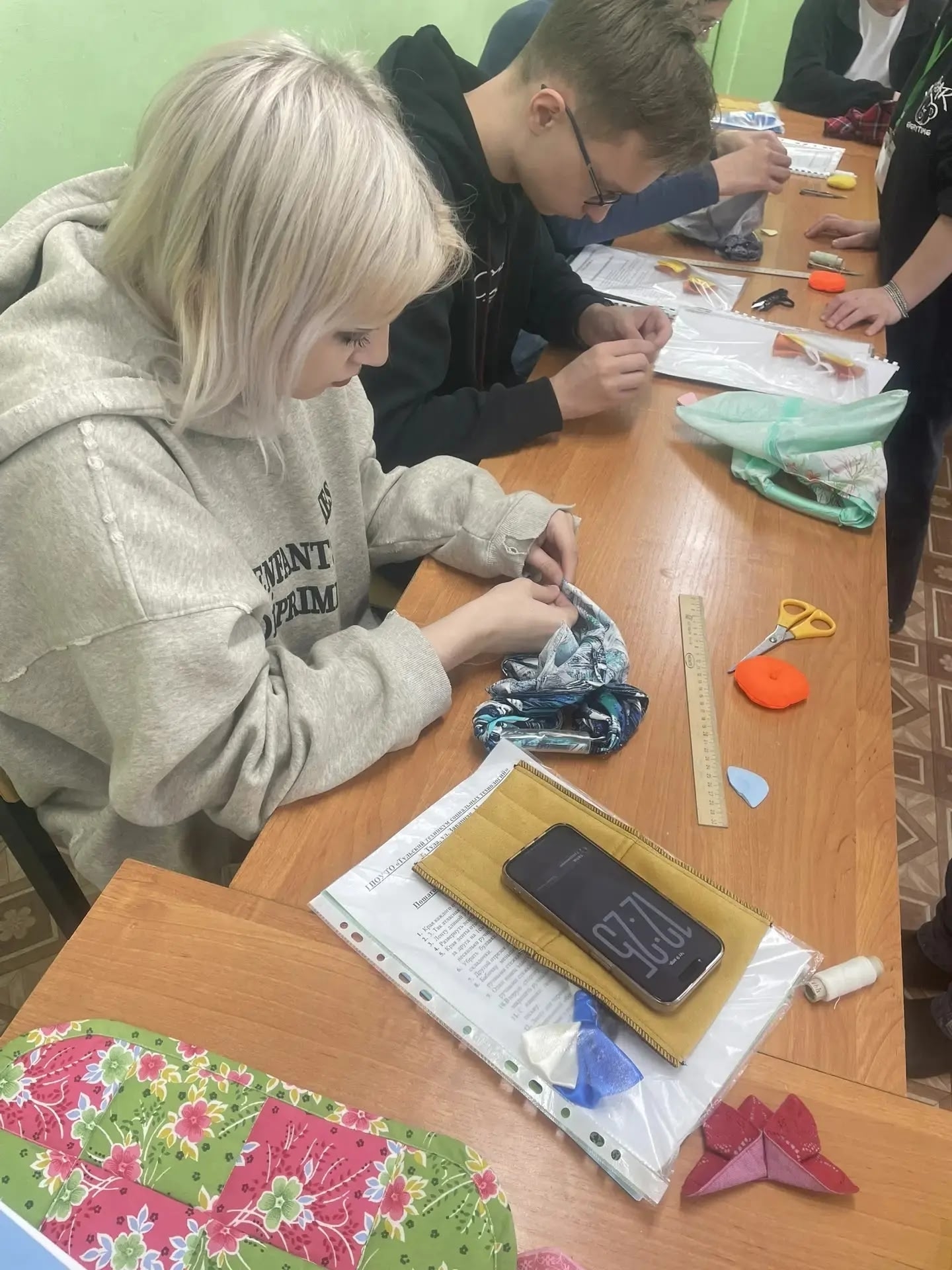 Преподаватели и мастера производственного обучения по профессиям портной и закройщик предложили ребятам изготовить галстук-бабочку и сумку-хобо.